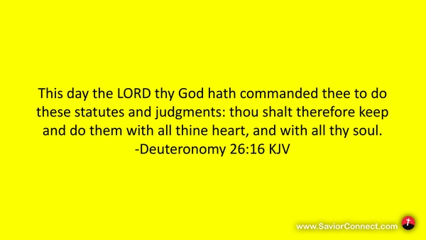 This day the LORD thy God hath commanded thee to do these statutes and judgments: thou shalt therefore keep and do them with all thine heart, and with all thy soul. -Deuteronomy 26:16 KJV