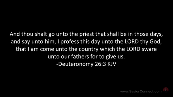 And thou shalt go unto the priest that shall be in those days, and say unto him, I profess this day unto the LORD thy God, that I am come unto the country which the LORD sware unto our fathers for to give us. -Deuteronomy 26:3 KJV