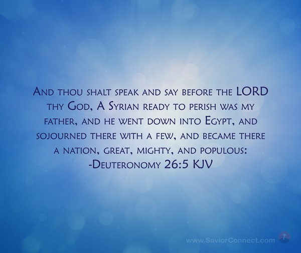And thou shalt speak and say before the LORD thy God, A Syrian ready to perish was my father, and he went down into Egypt, and sojourned there with a few, and became there a nation, great, mighty, and populous: -Deuteronomy 26:5 KJV