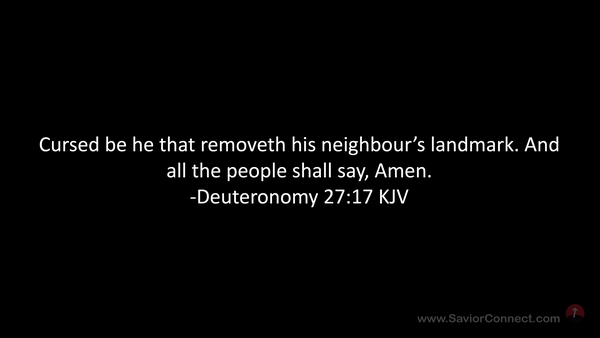 Cursed be he that removeth his neighbour's landmark. And all the people shall say, Amen. -Deuteronomy 27:17 KJV