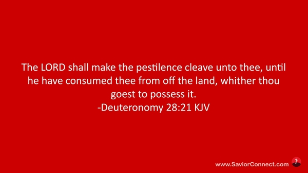 The LORD shall make the pestilence cleave unto thee, until he have consumed thee from off the land, whither thou goest to possess it. -Deuteronomy 28:21 KJV