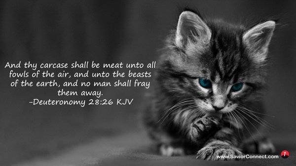 And thy carcase shall be meat unto all fowls of the air, and unto the beasts of the earth, and no man shall fray them away. -Deuteronomy 28:26 KJV
