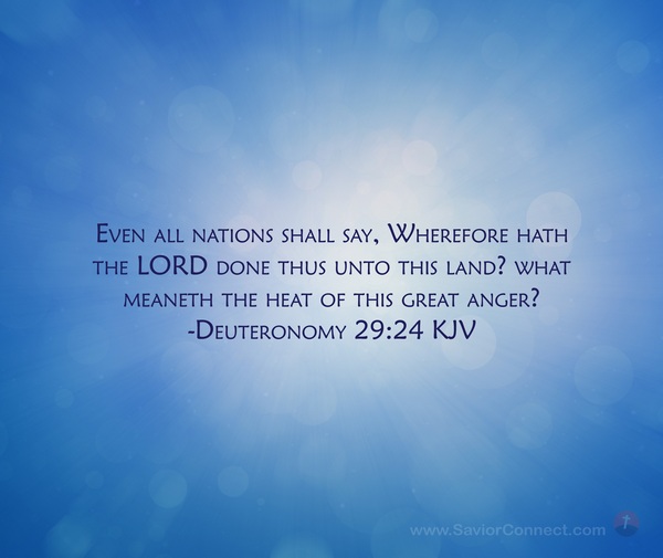 Even all nations shall say, Wherefore hath the LORD done thus unto this land? what meaneth the heat of this great anger? -Deuteronomy 29:24 KJV
