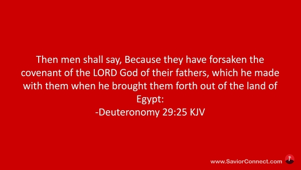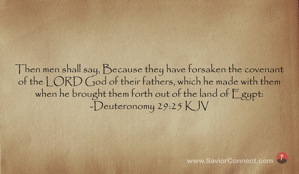 Then men shall say, Because they have forsaken the covenant of the LORD God of their fathers, which he made with them when he brought them forth out of the land of Egypt: -Deuteronomy 29:25 KJV