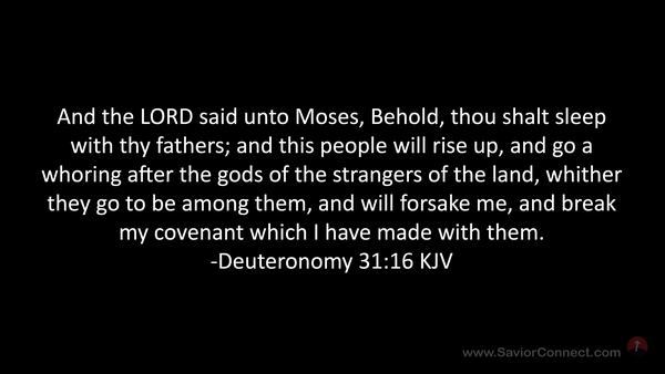 And the LORD said unto Moses, Behold, thou shalt sleep with thy fathers; and this people will rise up, and go a whoring after the gods of the strangers of the land, whither they go to be among them, and will forsake me, and break my covenant which I have made with them. -Deuteronomy 31:16 KJV
