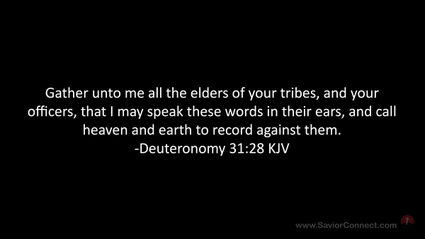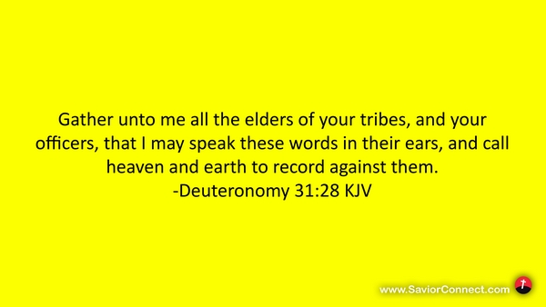 Gather unto me all the elders of your tribes, and your officers, that I may speak these words in their ears, and call heaven and earth to record against them. -Deuteronomy 31:28 KJV