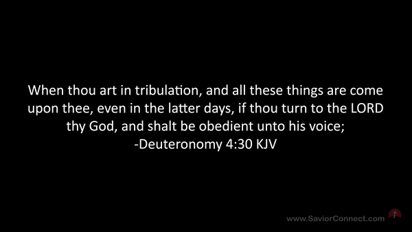 When thou art in tribulation, and all these things are come upon thee, even in the latter days, if thou turn to the LORD thy God, and shalt be obedient unto his voice; -Deuteronomy 4:30 KJV