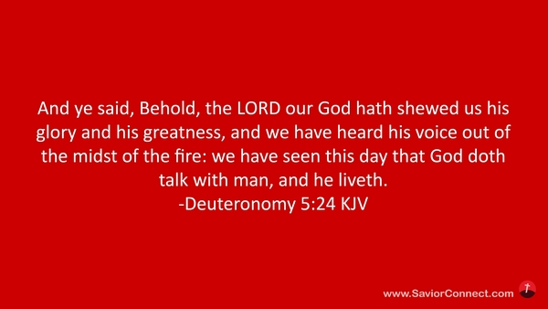 And ye said, Behold, the LORD our God hath shewed us his glory and his greatness, and we have heard his voice out of the midst of the fire: we have seen this day that God doth talk with man, and he liveth. -Deuteronomy 5:24 KJV