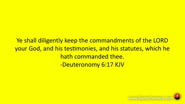 Ye shall diligently keep the commandments of the LORD your God, and his testimonies, and his statutes, which he hath commanded thee. -Deuteronomy 6:17 KJV