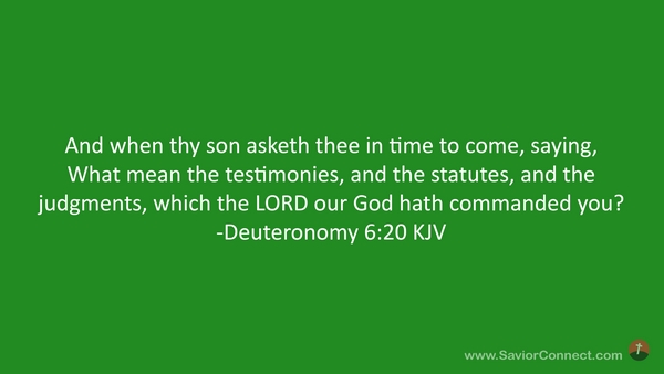 And when thy son asketh thee in time to come, saying, What mean the testimonies, and the statutes, and the judgments, which the LORD our God hath commanded you? -Deuteronomy 6:20 KJV