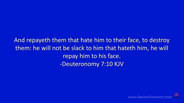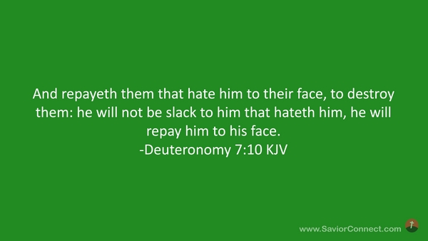 And repayeth them that hate him to their face, to destroy them: he will not be slack to him that hateth him, he will repay him to his face. -Deuteronomy 7:10 KJV