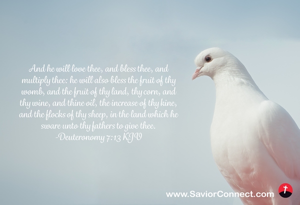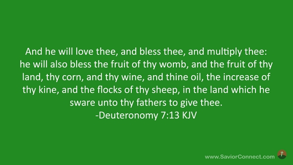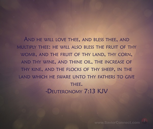 And he will love thee, and bless thee, and multiply thee: he will also bless the fruit of thy womb, and the fruit of thy land, thy corn, and thy wine, and thine oil, the increase of thy kine, and the flocks of thy sheep, in the land which he sware unto thy fathers to give thee. -Deuteronomy 7:13 KJV