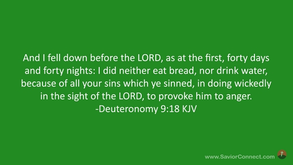 And I fell down before the LORD, as at the first, forty days and forty nights: I did neither eat bread, nor drink water, because of all your sins which ye sinned, in doing wickedly in the sight of the LORD, to provoke him to anger. -Deuteronomy 9:18 KJV