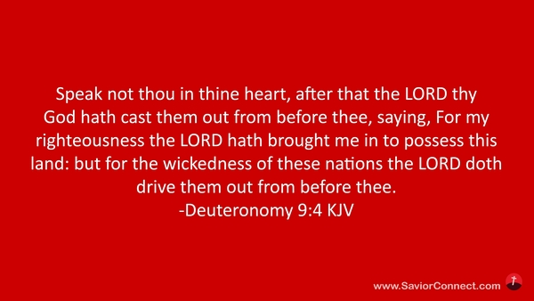 Speak not thou in thine heart, after that the LORD thy God hath cast them out from before thee, saying, For my righteousness the LORD hath brought me in to possess this land: but for the wickedness of these nations the LORD doth drive them out from before thee. -Deuteronomy 9:4 KJV