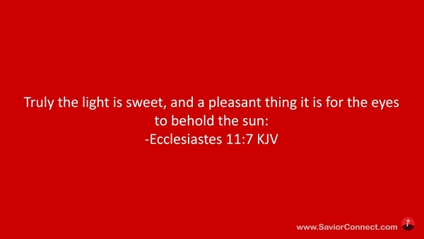 Truly the light is sweet, and a pleasant thing it is for the eyes to behold the sun: -Ecclesiastes 11:7 KJV