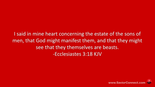 I said in mine heart concerning the estate of the sons of men, that God might manifest them, and that they might see that they themselves are beasts. -Ecclesiastes 3:18 KJV