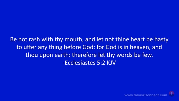 Be not rash with thy mouth, and let not thine heart be hasty to utter any thing before God: for God is in heaven, and thou upon earth: therefore let thy words be few. -Ecclesiastes 5:2 KJV