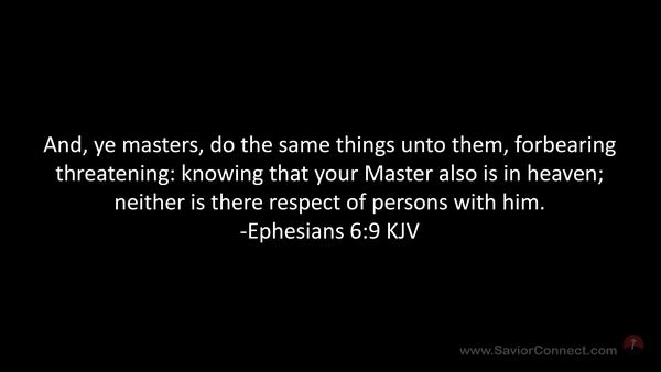 And, ye masters, do the same things unto them, forbearing threatening: knowing that your Master also is in heaven; neither is there respect of persons with him. -Ephesians 6:9 KJV