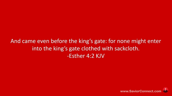 And came even before the king's gate: for none might enter into the king's gate clothed with sackcloth. -Esther 4:2 KJV