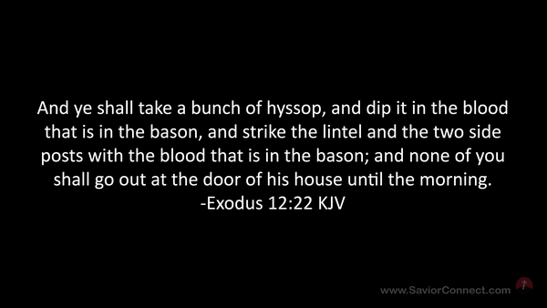 And ye shall take a bunch of hyssop, and dip it in the blood that is in the bason, and strike the lintel and the two side posts with the blood that is in the bason; and none of you shall go out at the door of his house until the morning. -Exodus 12:22 KJV