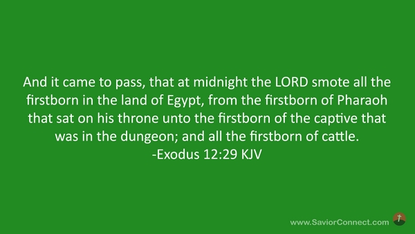 And it came to pass, that at midnight the LORD smote all the firstborn in the land of Egypt, from the firstborn of Pharaoh that sat on his throne unto the firstborn of the captive that was in the dungeon; and all the firstborn of cattle. -Exodus 12:29 KJV