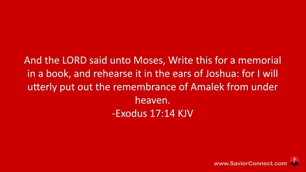 And the LORD said unto Moses, Write this for a memorial in a book, and rehearse it in the ears of Joshua: for I will utterly put out the remembrance of Amalek from under heaven. -Exodus 17:14 KJV