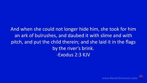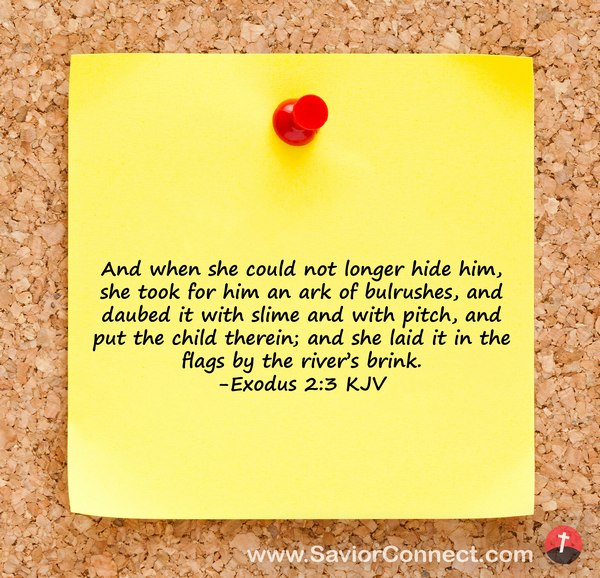 And when she could not longer hide him, she took for him an ark of bulrushes, and daubed it with slime and with pitch, and put the child therein; and she laid it in the flags by the river's brink. -Exodus 2:3 KJV