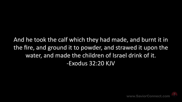 And he took the calf which they had made, and burnt it in the fire, and ground it to powder, and strawed it upon the water, and made the children of Israel drink of it. -Exodus 32:20 KJV