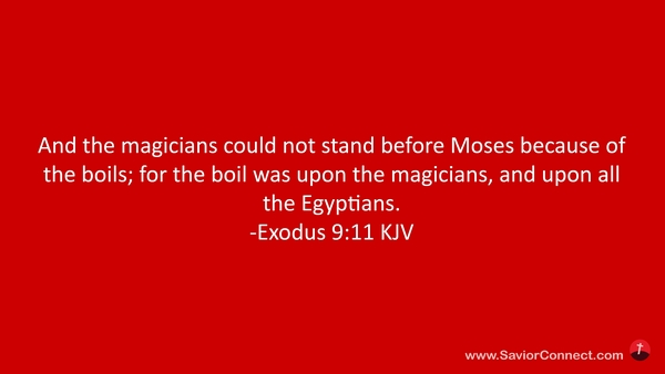 And the magicians could not stand before Moses because of the boils; for the boil was upon the magicians, and upon all the Egyptians. -Exodus 9:11 KJV
