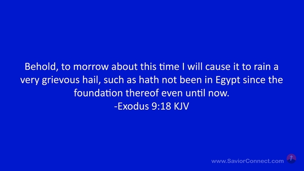 Behold, to morrow about this time I will cause it to rain a very grievous hail, such as hath not been in Egypt since the foundation thereof even until now. -Exodus 9:18 KJV