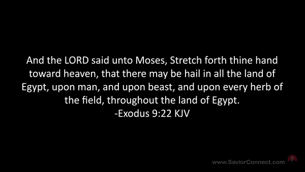 And the LORD said unto Moses, Stretch forth thine hand toward heaven, that there may be hail in all the land of Egypt, upon man, and upon beast, and upon every herb of the field, throughout the land of Egypt. -Exodus 9:22 KJV