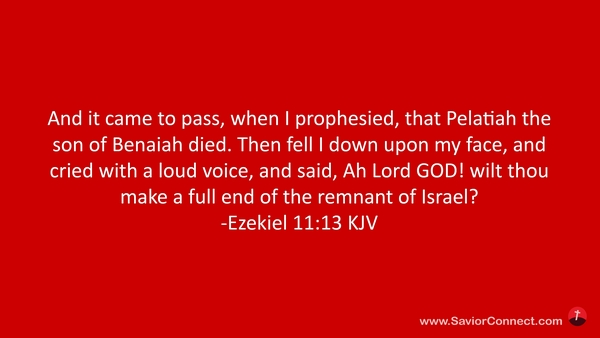 And it came to pass, when I prophesied, that Pelatiah the son of Benaiah died. Then fell I down upon my face, and cried with a loud voice, and said, Ah Lord GOD! wilt thou make a full end of the remnant of Israel? -Ezekiel 11:13 KJV