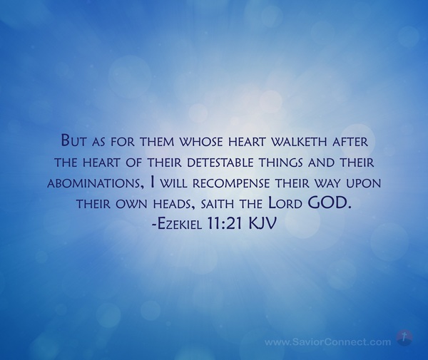 But as for them whose heart walketh after the heart of their detestable things and their abominations, I will recompense their way upon their own heads, saith the Lord GOD. -Ezekiel 11:21 KJV
