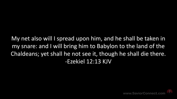My net also will I spread upon him, and he shall be taken in my snare: and I will bring him to Babylon to the land of the Chaldeans; yet shall he not see it, though he shall die there. -Ezekiel 12:13 KJV