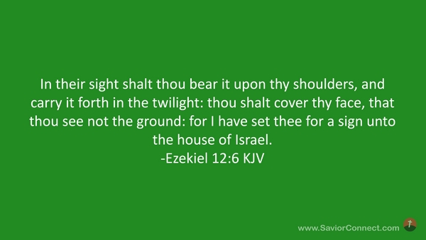 In their sight shalt thou bear it upon thy shoulders, and carry it forth in the twilight: thou shalt cover thy face, that thou see not the ground: for I have set thee for a sign unto the house of Israel. -Ezekiel 12:6 KJV