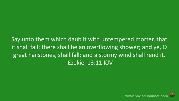 Say unto them which daub it with untempered morter, that it shall fall: there shall be an overflowing shower; and ye, O great hailstones, shall fall; and a stormy wind shall rend it. -Ezekiel 13:11 KJV