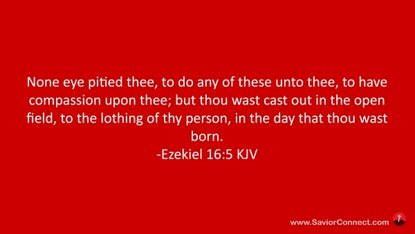 None eye pitied thee, to do any of these unto thee, to have compassion upon thee; but thou wast cast out in the open field, to the lothing of thy person, in the day that thou wast born. -Ezekiel 16:5 KJV