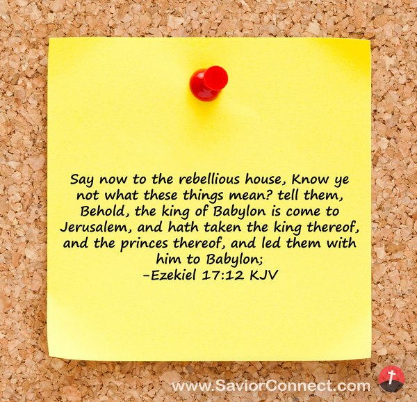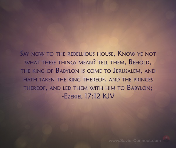 Say now to the rebellious house, Know ye not what these things mean? tell them, Behold, the king of Babylon is come to Jerusalem, and hath taken the king thereof, and the princes thereof, and led them with him to Babylon; -Ezekiel 17:12 KJV