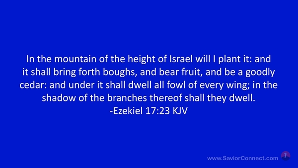 In the mountain of the height of Israel will I plant it: and it shall bring forth boughs, and bear fruit, and be a goodly cedar: and under it shall dwell all fowl of every wing; in the shadow of the branches thereof shall they dwell. -Ezekiel 17:23 KJV