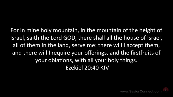 For in mine holy mountain, in the mountain of the height of Israel, saith the Lord GOD, there shall all the house of Israel, all of them in the land, serve me: there will I accept them, and there will I require your offerings, and the firstfruits of your oblations, with all your holy things. -Ezekiel 20:40 KJV