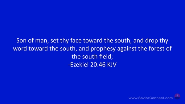 Son of man, set thy face toward the south, and drop thy word toward the south, and prophesy against the forest of the south field; -Ezekiel 20:46 KJV