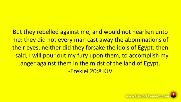But they rebelled against me, and would not hearken unto me: they did not every man cast away the abominations of their eyes, neither did they forsake the idols of Egypt: then I said, I will pour out my fury upon them, to accomplish my anger against them in the midst of the land of Egypt. -Ezekiel 20:8 KJV