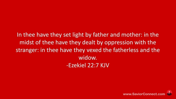 In thee have they set light by father and mother: in the midst of thee have they dealt by oppression with the stranger: in thee have they vexed the fatherless and the widow. -Ezekiel 22:7 KJV