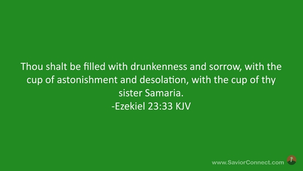 Thou shalt be filled with drunkenness and sorrow, with the cup of astonishment and desolation, with the cup of thy sister Samaria. -Ezekiel 23:33 KJV