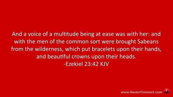 And a voice of a multitude being at ease was with her: and with the men of the common sort were brought Sabeans from the wilderness, which put bracelets upon their hands, and beautiful crowns upon their heads. -Ezekiel 23:42 KJV