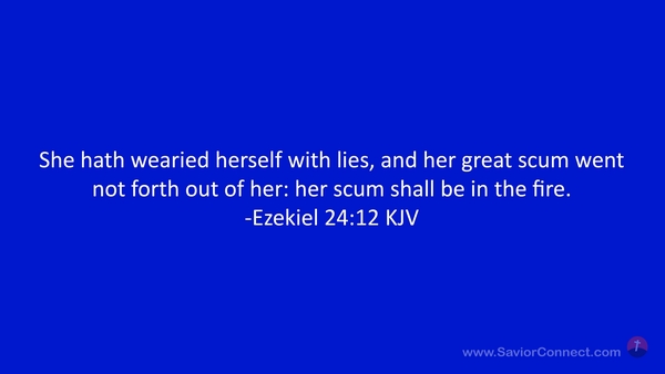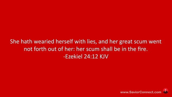 She hath wearied herself with lies, and her great scum went not forth out of her: her scum shall be in the fire. -Ezekiel 24:12 KJV