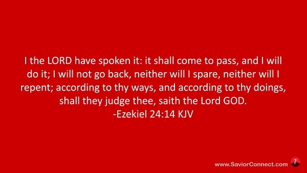 I the LORD have spoken it: it shall come to pass, and I will do it; I will not go back, neither will I spare, neither will I repent; according to thy ways, and according to thy doings, shall they judge thee, saith the Lord GOD. -Ezekiel 24:14 KJV