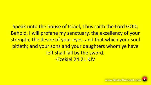 Speak unto the house of Israel, Thus saith the Lord GOD; Behold, I will profane my sanctuary, the excellency of your strength, the desire of your eyes, and that which your soul pitieth; and your sons and your daughters whom ye have left shall fall by the sword. -Ezekiel 24:21 KJV