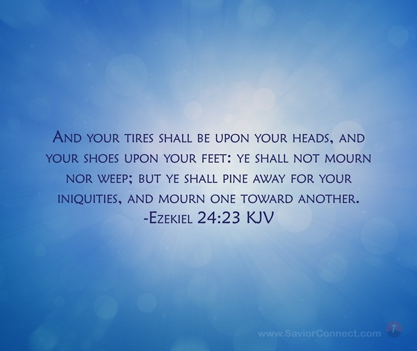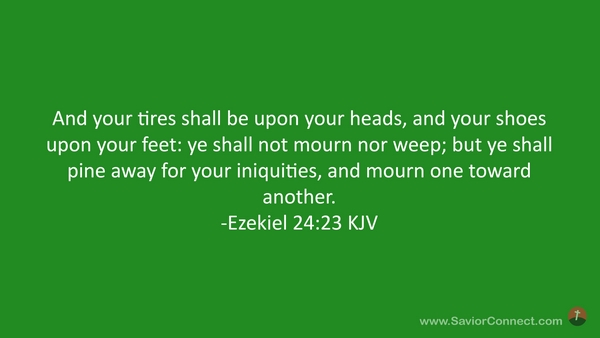 And your tires shall be upon your heads, and your shoes upon your feet: ye shall not mourn nor weep; but ye shall pine away for your iniquities, and mourn one toward another. -Ezekiel 24:23 KJV
