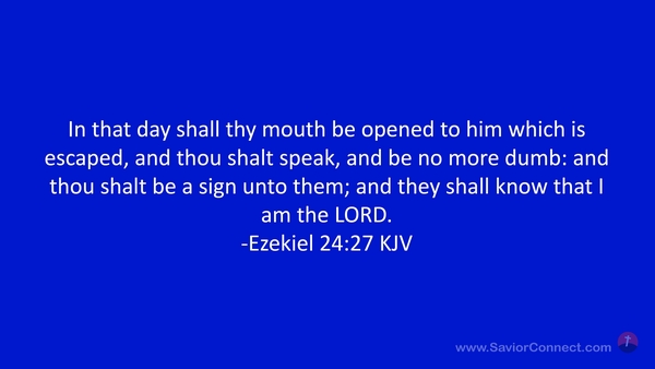 In that day shall thy mouth be opened to him which is escaped, and thou shalt speak, and be no more dumb: and thou shalt be a sign unto them; and they shall know that I am the LORD. -Ezekiel 24:27 KJV